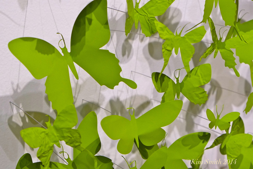 Friday night I had the joy to attend the fabulous new exhibit at the Berkshire Museum titled “Butterflies!” The galleries are filled with hands on art and science activities, contemporary butterfly sculpture, artifacts from the museum’s collections, live caterpillars, and mixed media of photography and film, including an audio track from Dr. Lincoln Brower discussing what happens within a chrysalis. And, as part of the exhibit, one of the galleries houses a large butterfly pavilion with over 200 live tropical butterflies from around the world!
