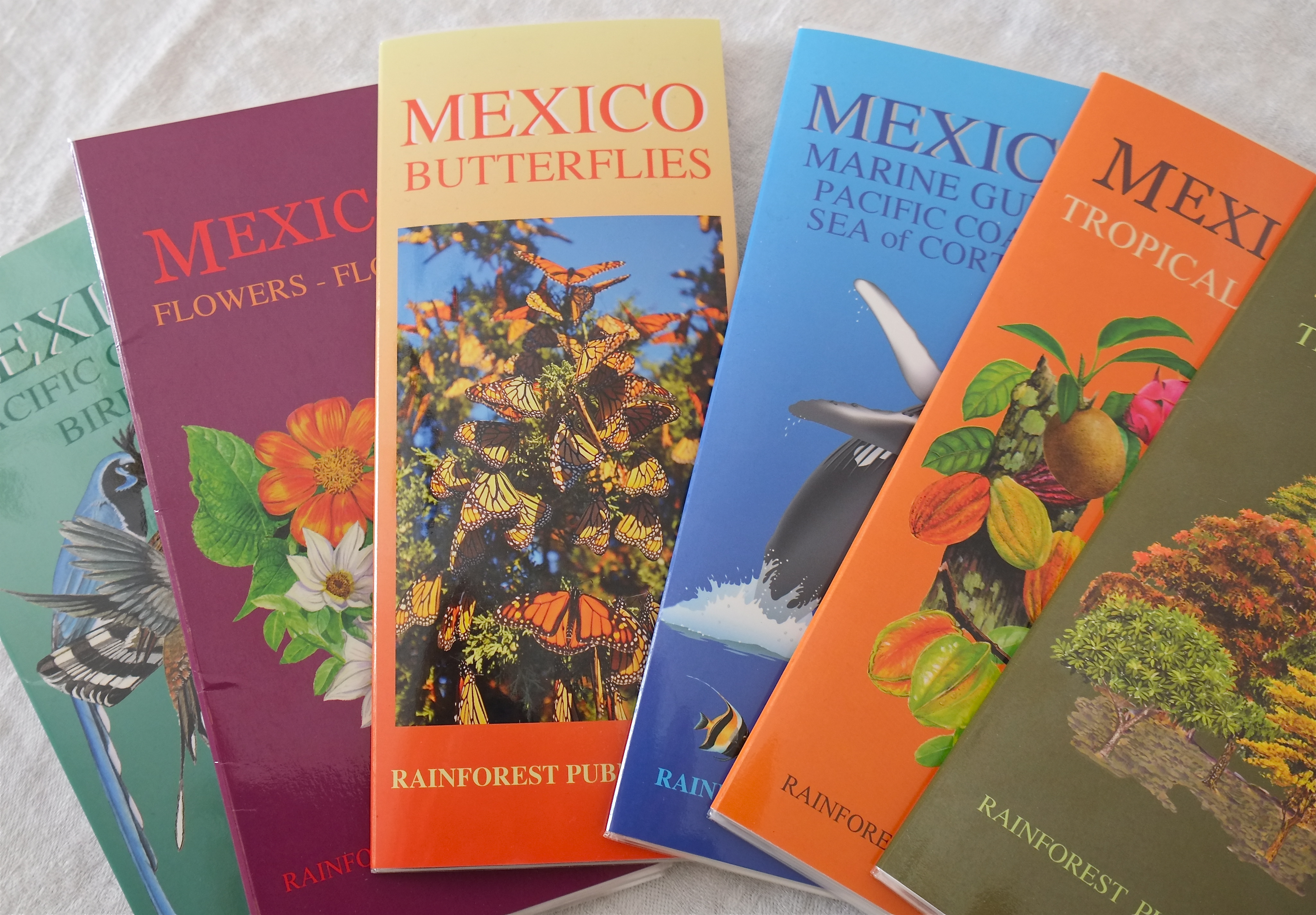 Recently brochures from Rain Forest Publications arrived. Don’t you love pocket guides, for the very reason the name infers–so easy to tuck along when traveling and hiking. That’s my photo on the cover of “Mexico Butterflies.” The photo was taken not in Mexico, but in Gloucester!