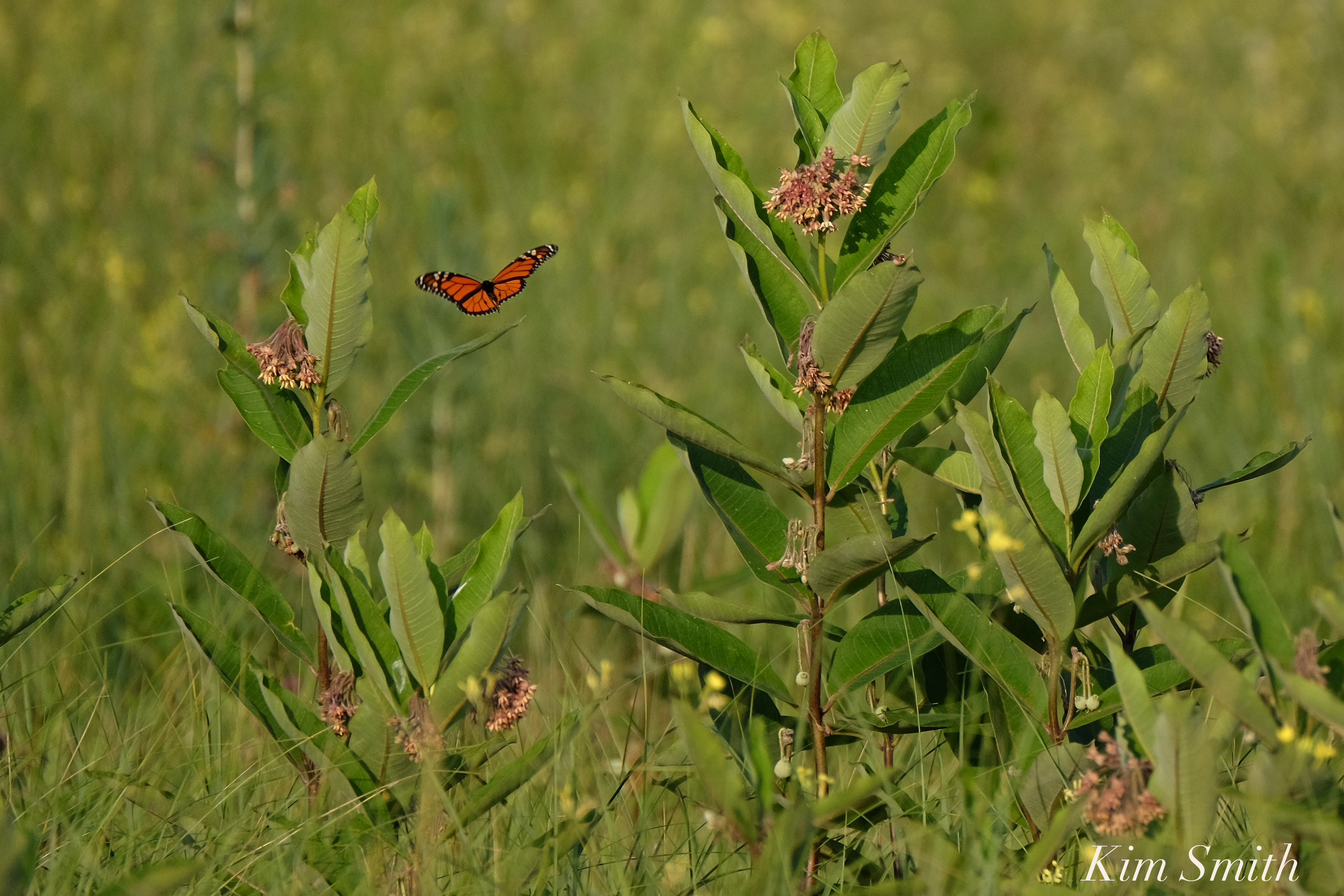 Monarch Flying Common Milkweed Good Harbor Beach dune copyright Kim Smith