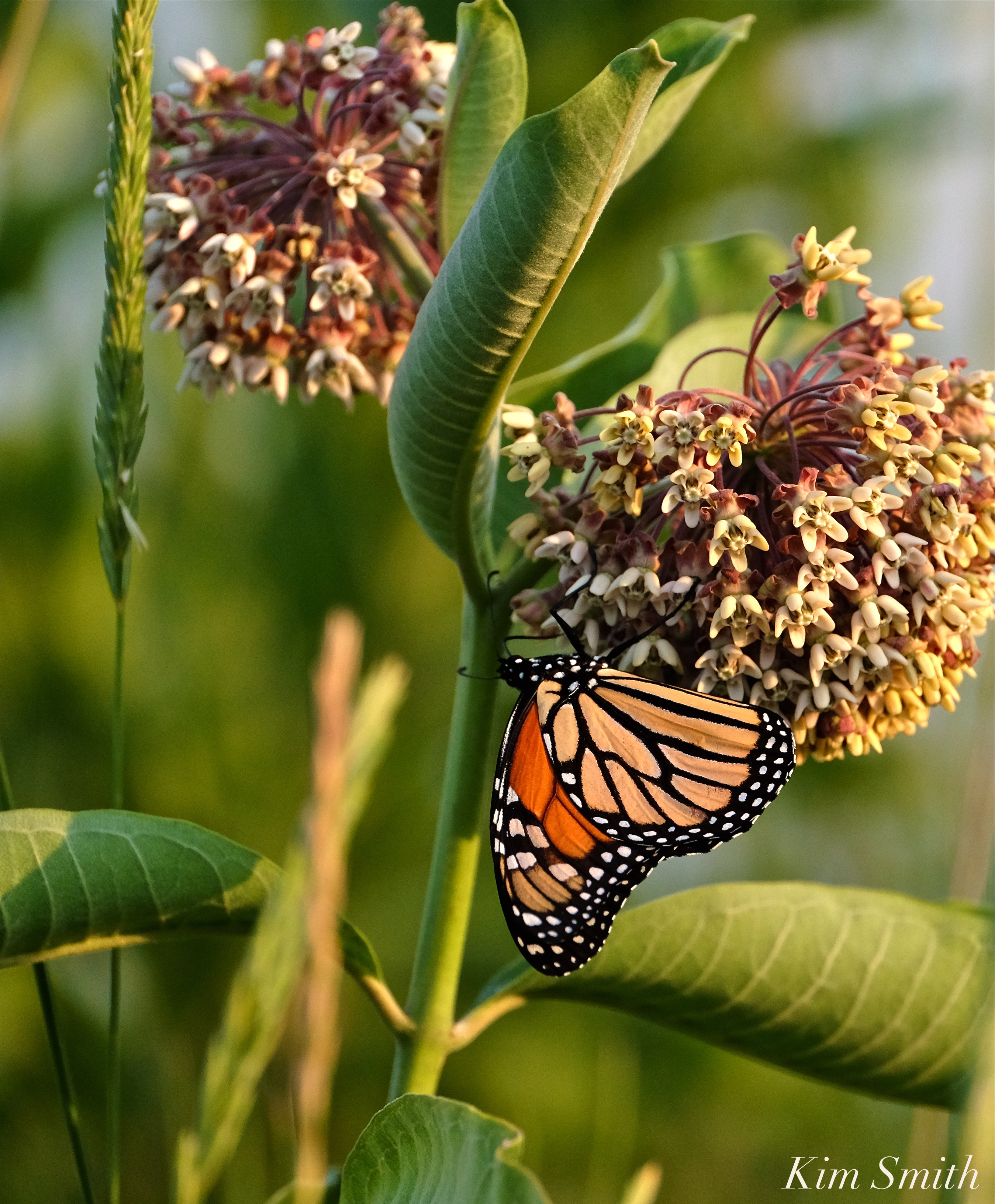 Monarch nectaring Common Milkweed Good Harbor Beach dune -1 copyright Kim Smith