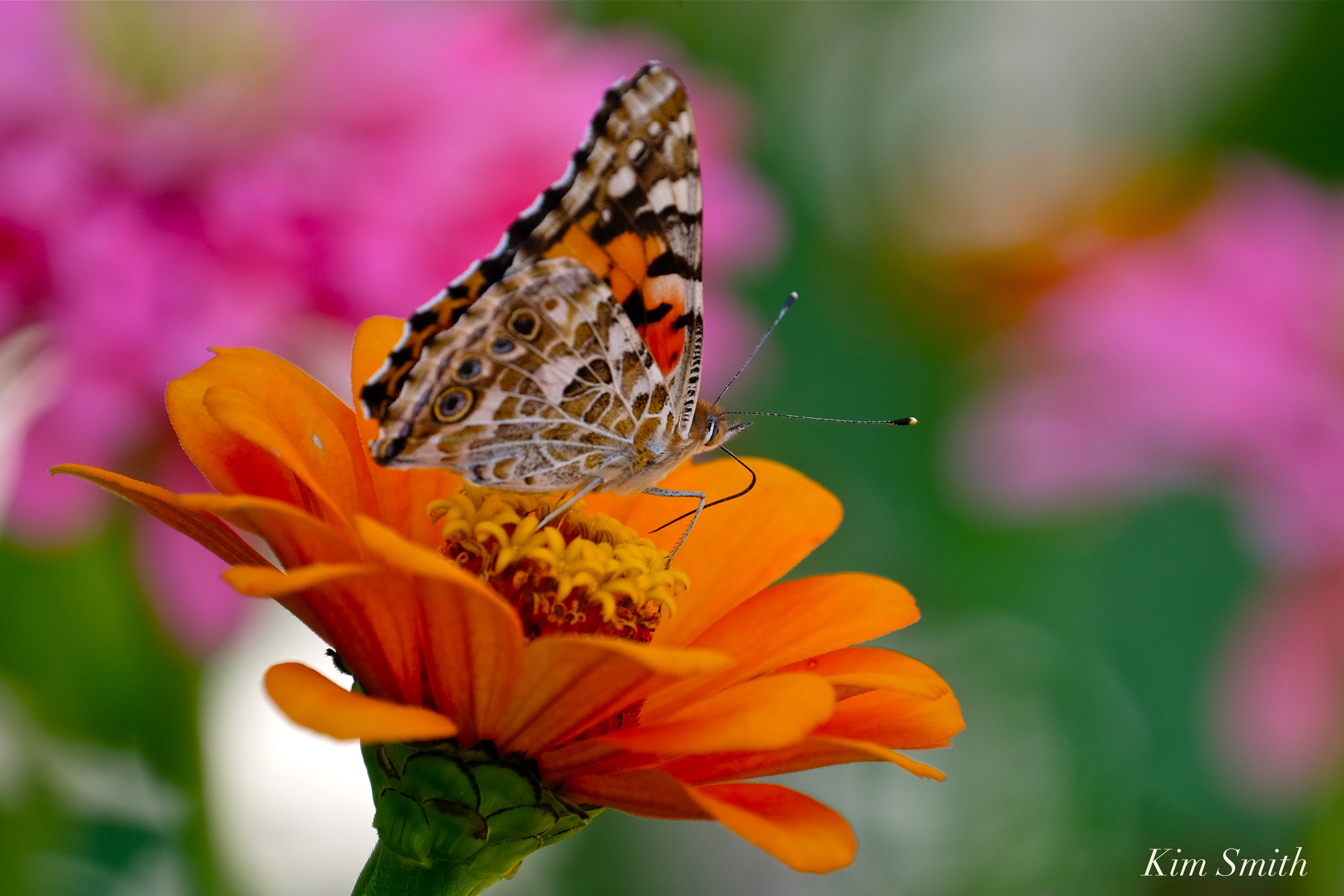 Painted Lady Butterfly Zinnias -4 copyright Kim Smith
