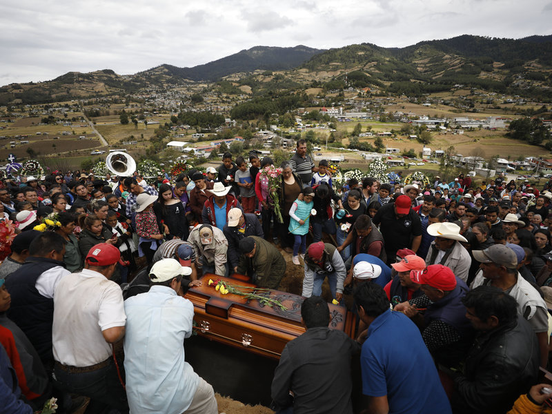 Mourners lower the coffin of community activist Homero Gómez González into a grave at a hillside cemetery in Ocampo, Mexico, on Friday. PHOTO: Rebecca Blackwell/AP