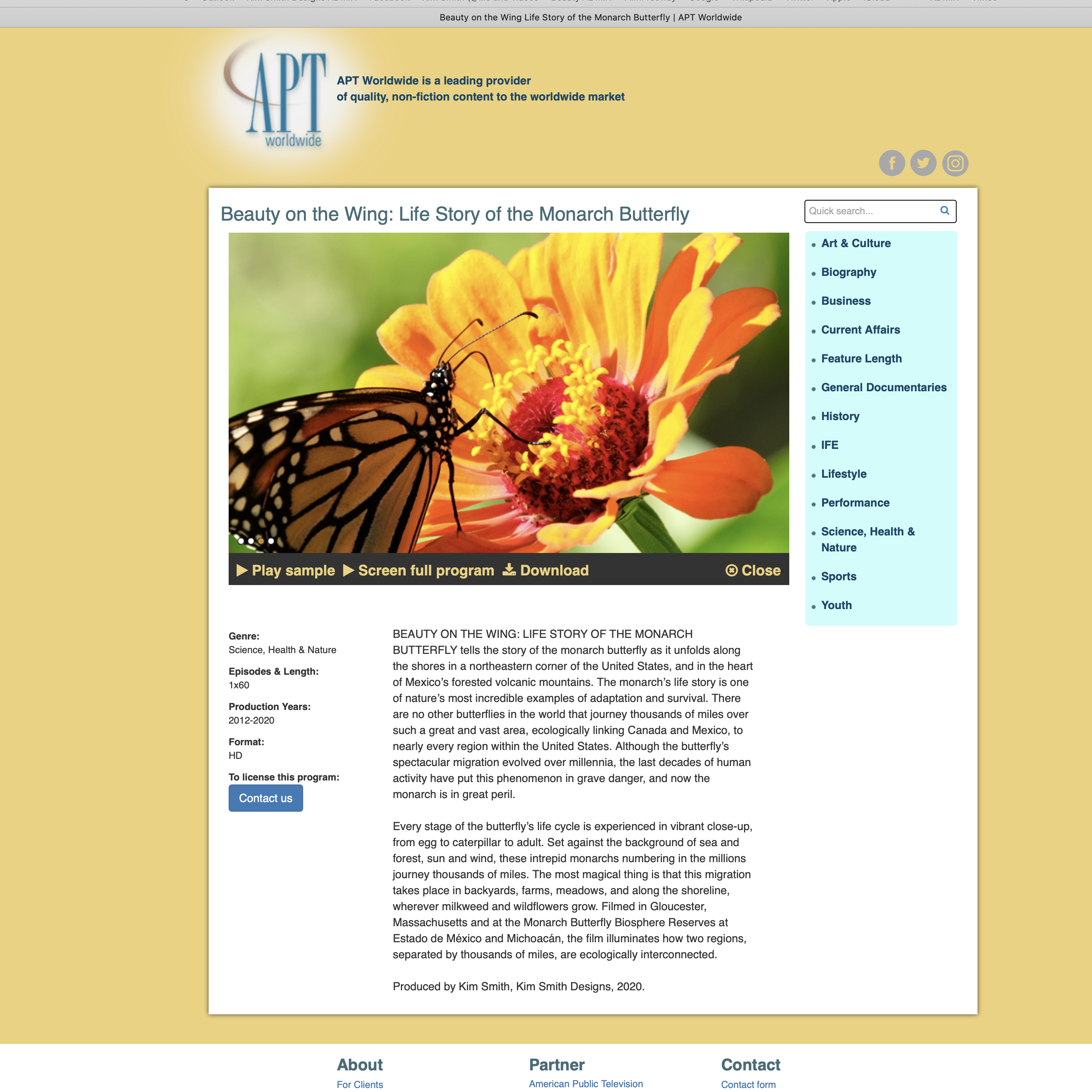 Beauty on the Wing American Public Television World Wide copyright Kim Smith – 2 of 4 ← Previous Next →