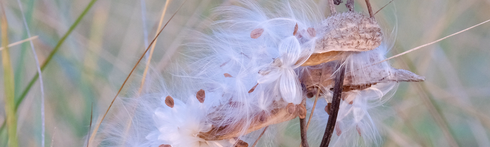 Blog post header Milkweed Seedpod copyright Kim Smith