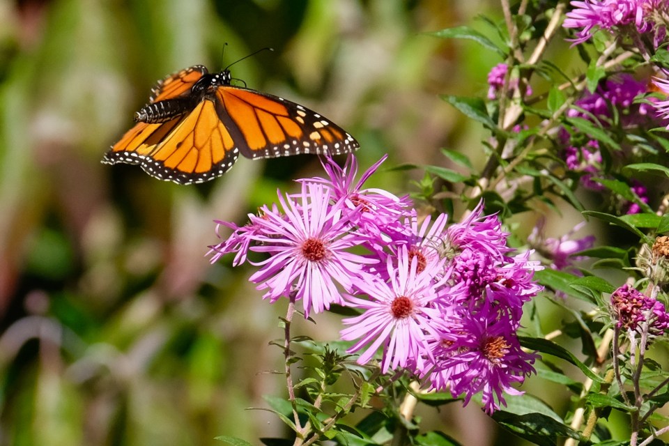 Monarch Butterfly on the Wing New England Aster copyright Kim Smith