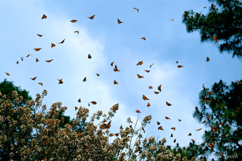 Monarchs in flight Macheros Mexico copyright Kim Smith – 32