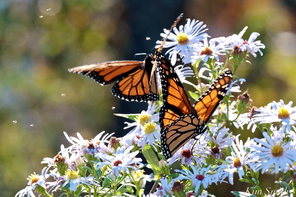 Eggs, caterpillars, chrysalides, and butterflies that would have been killed by more seasonable colder temperatures are able to survive in the unusually warm weather we are experiencing on the East Coast. However, most of the wildflowers that provide fortification to the Monarchs on their southward journey have withered. You can help late stragglers by keeping nectar producing flowers in your garden going as long as possible. In our garden, it is the old passalong Korean Daisy that is providing nectar to bees and butterflies, and it will bloom until the first hard frost.