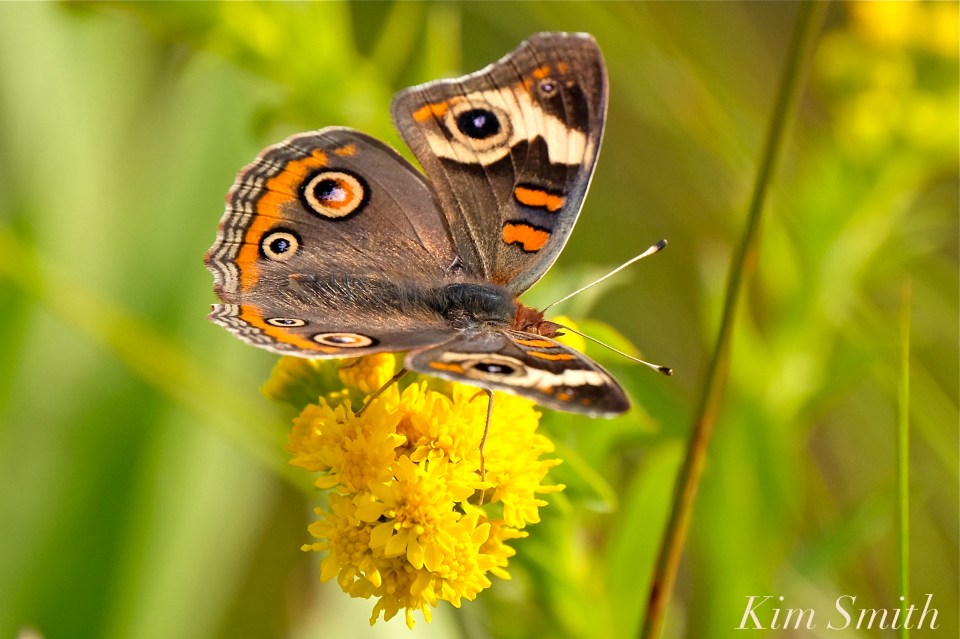 The Common Buckeye is most attracted to yellow flowers. Look for them drinking nectar at Seaside Goldenrod and the yellow florets at the center of New England and Purple-stemmed Asters.