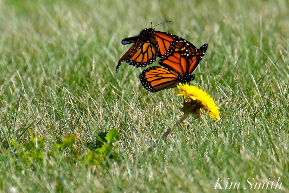 In the above photo you can see a Monarch with a Black Swallowtail flying overhead. This stunning patch of wildflowers and nectar plants was sited in Gloucester at a prime spot for Monarchs to rest and refuel after migrating across Massachusetts Bay. The new home owners ripped out most of the wildflowers and planted the site in a more formal style, with non-native perennials and shrubs. At this location, I would often see Monarchs, Tiger Swallowtails, Black Swallowtails, Painted and American Ladies, Sulphurs, and many other species. That is no longer true.