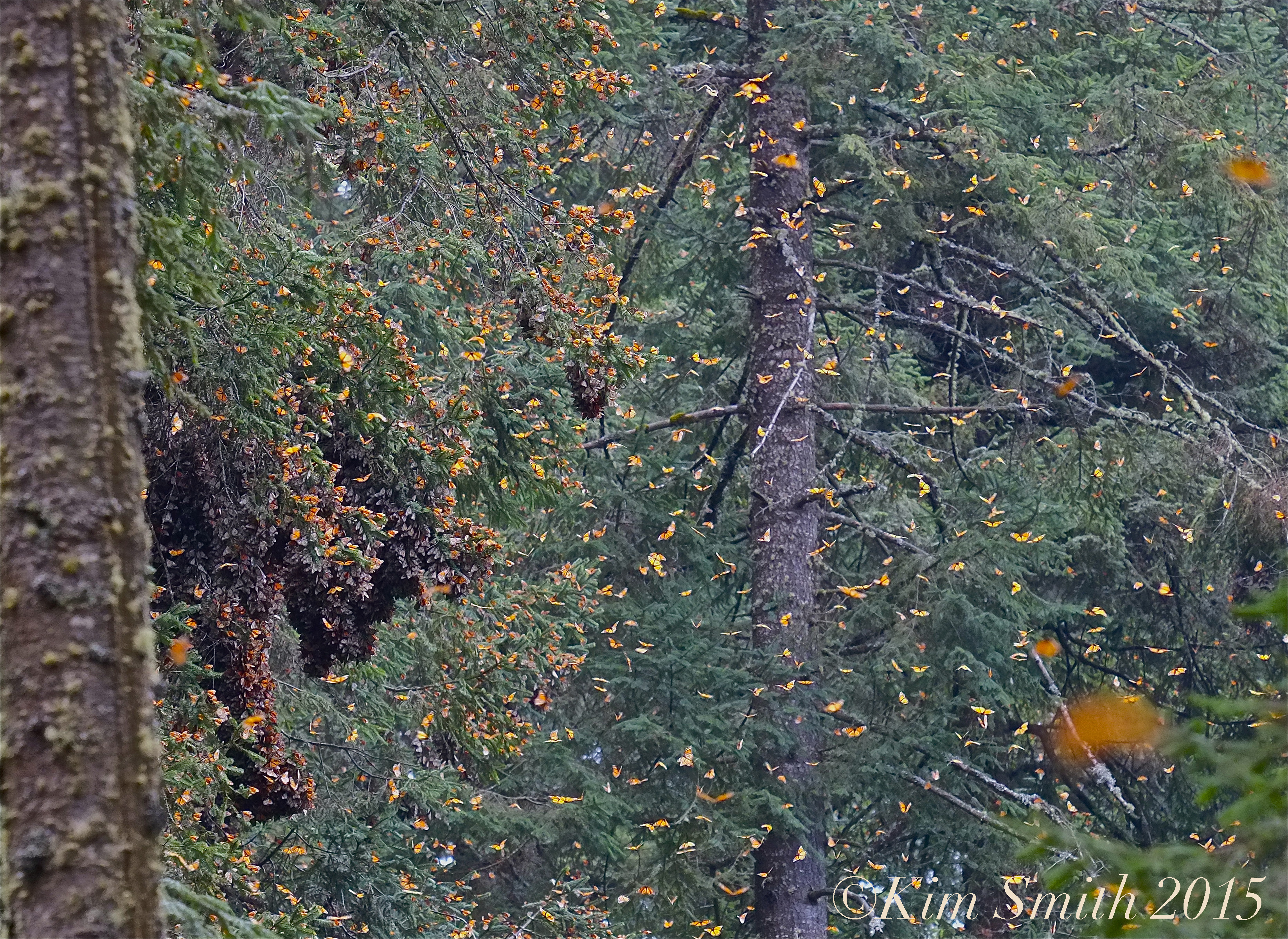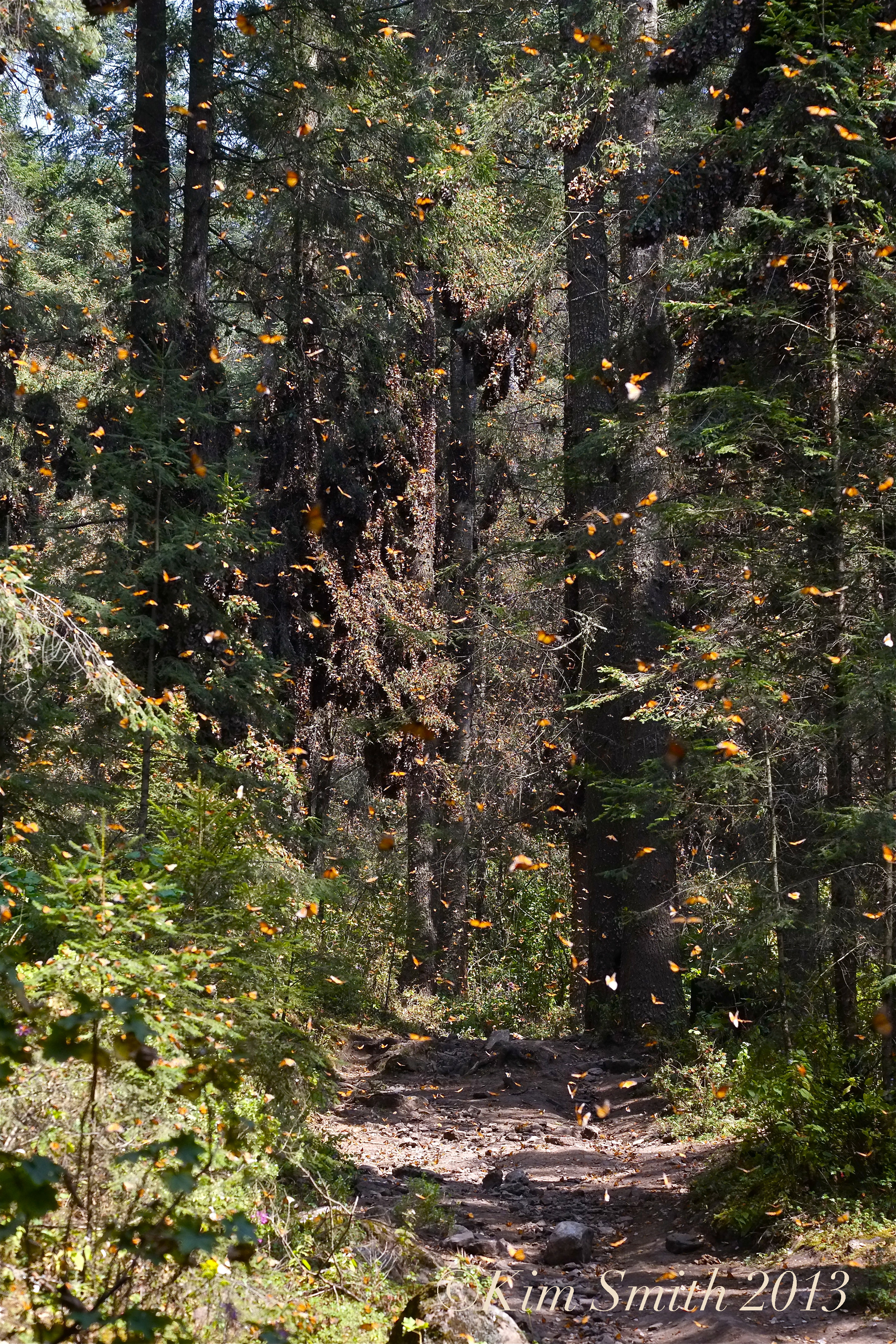What is a Monarch Butterfly explosion? The butterflies migrate to Mexico to keep from freezing to death in northern climates. The air is cool and moist in the trans-Mexican volcanic mountains, cool enough to keep them inactive and in a state of sexual immaturity, called diapause, but not so cold that they will freeze. As spring approaches and the Earth’s temperature begins to rise, the butterflies sleeping in the oyamel fir forests need to get out of the hot sun. Millions explode from the trees, drink water from nearby mountain streams, and move to a cooler, shadier spot on the mountain.